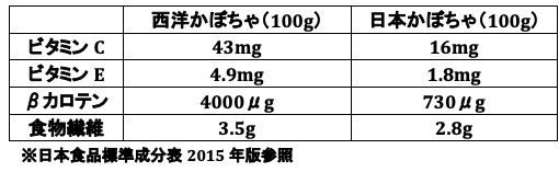 しかし、西洋かぼちゃに比べると β カロテンの量はとても少なくなっています。