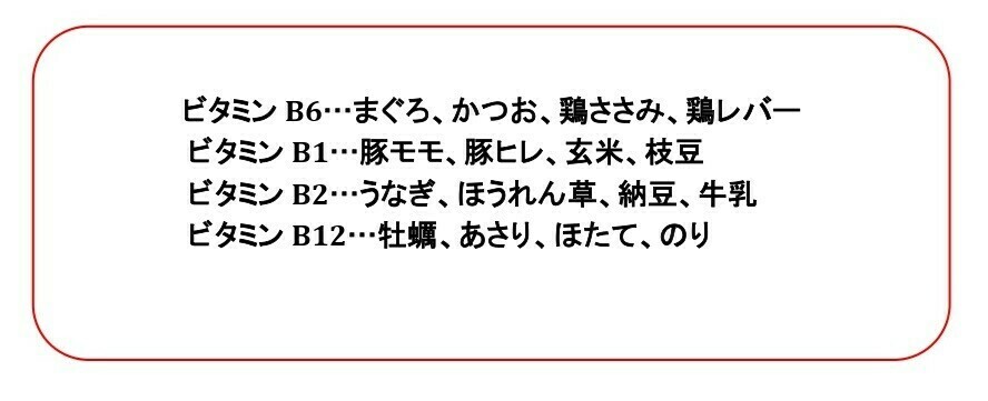 ビタミンB群は、疲労回復や皮膚や粘膜の健康維持に効果があります。