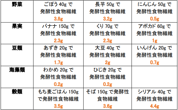 発酵性食物繊維の理想的な摂取量は1日に5gと言われています!