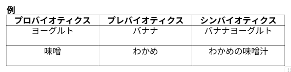 プロバイオティクス(乳酸菌、麹菌、納豆菌など)とプレバイオティクス(芋、わかめ、バナナなど)があります。
