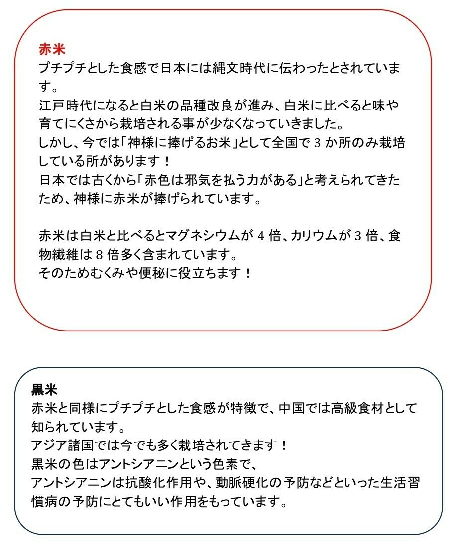 古代米とは、赤米・黒米・緑米のことをいい、とても栄養価が高いお米になっています!